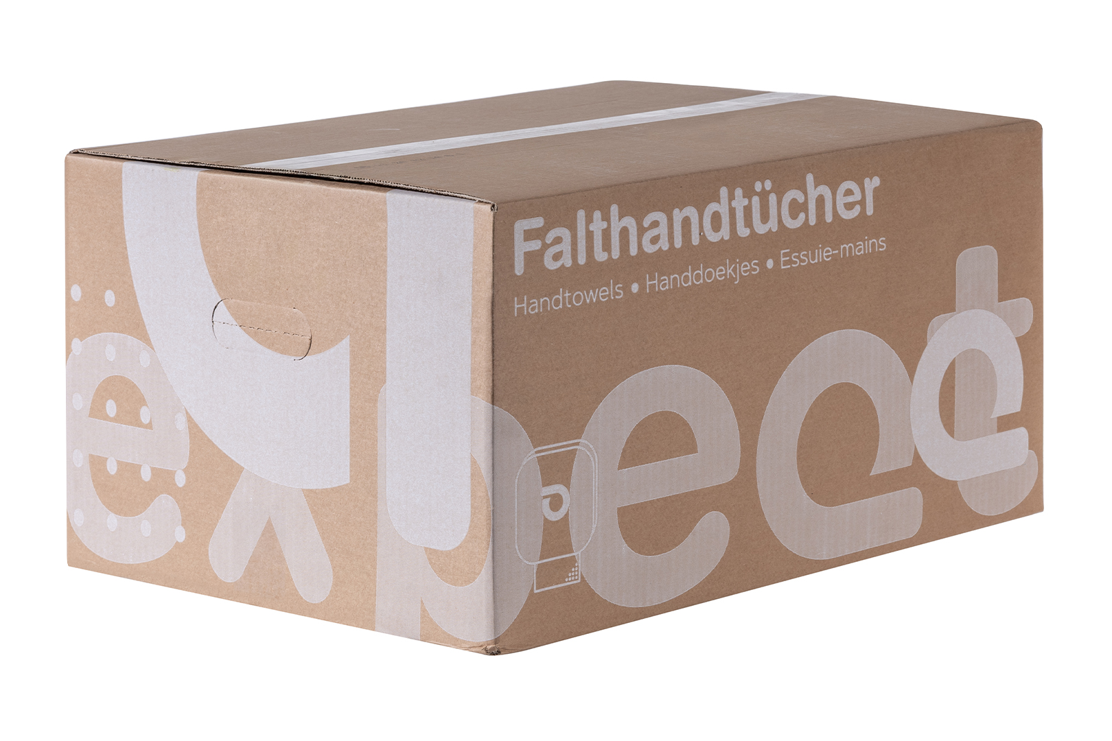 V-Falz: Das Tuch ist einmal in der Mitte gefaltet ("V"-Form) und die Blätter sind ineinandergelegt (auch als ZZ-Falz bezeichnet). Hygienische Einzelblattentnahme; das nächste Tuch wird automatisch ein Stück weit bereitgestellt.